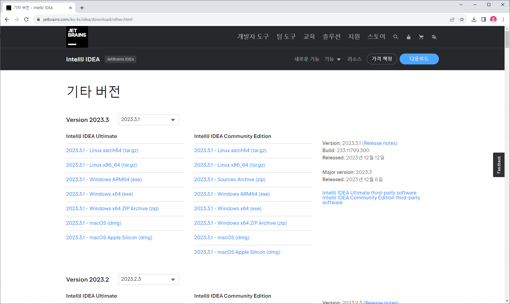 | IntelliJ IDEA Ultimate 과거 버전 설치하기 (0) | 2023.12.13 |